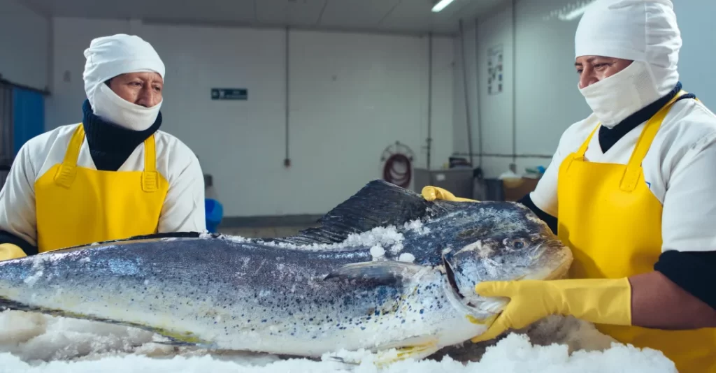 At our plant we process fish fillets that are purchased from artisanal fishermen, thus promoting the economic growth and development of Ecuadorian micro-entrepreneurs. The species processed at the plant are: Dorado (Coryphaena hippurus), Rock Corvina (Brotula Clarkae), Wahoo (Acanthocybium Solandry), Tuna (Thunnus). The fish are received and immediately processed to ensure their freshness, quality and organoleptic properties.